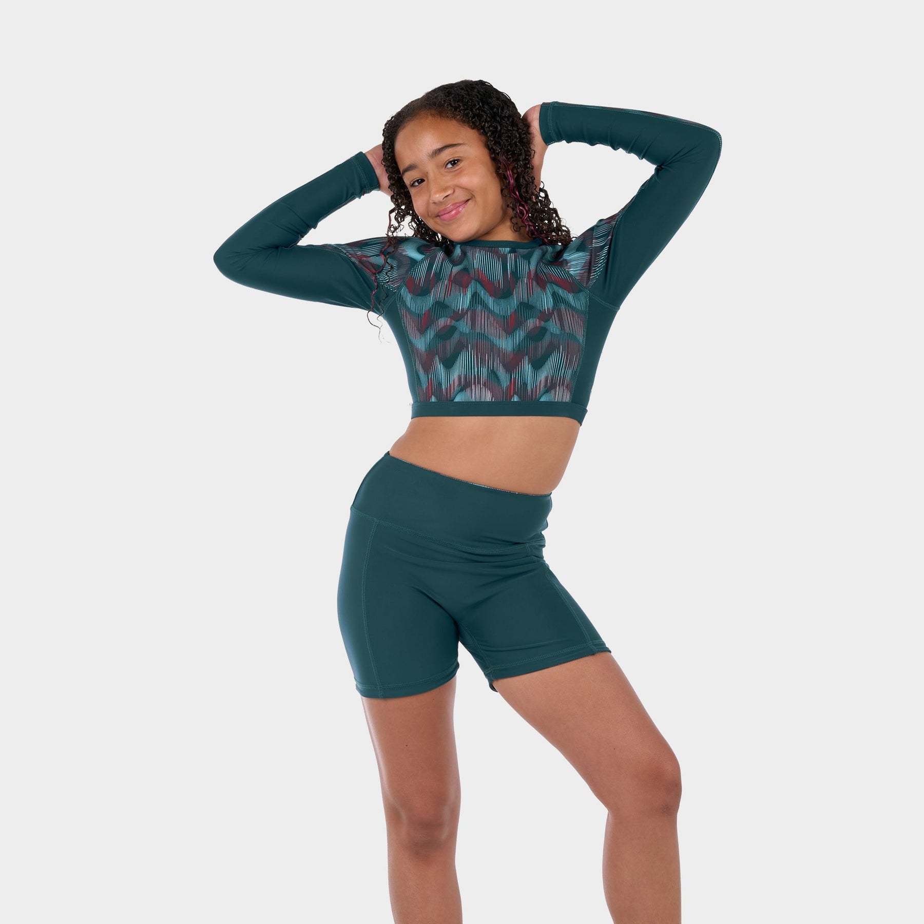 The Isla is a surf-inspired cropped rashguard that is a fun alternative to traditional rash guards. Paired with a high-waisted bikini or one-piece, the Isla has sun protection of a long sleeve with the freedom of two-piece swim. It features quick-dry material and flat-stitched seams to prevent chafing. The Isla is great for days on the boat or on the water.