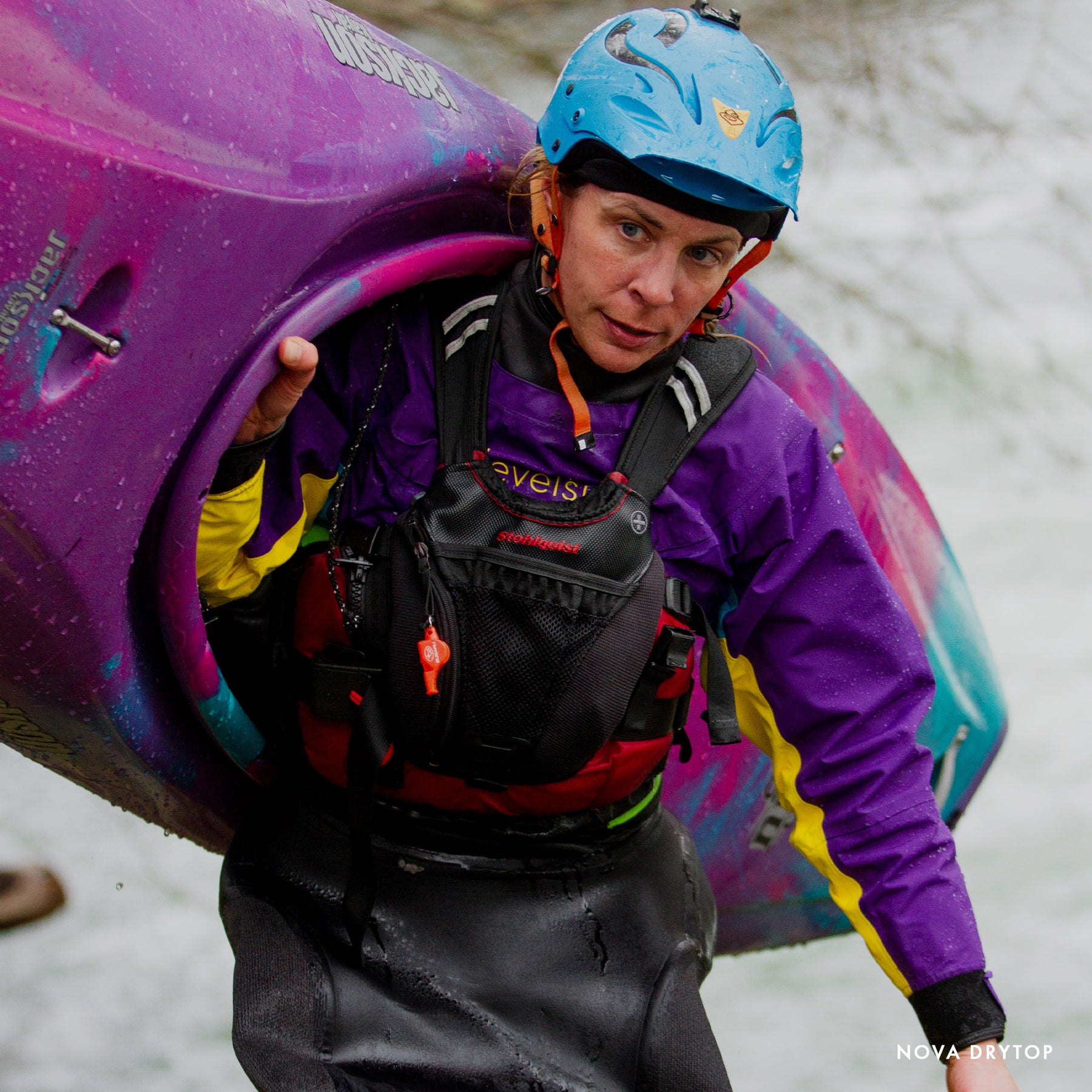The Nova is a woman-specific dry top constructed from a combination of our eXhaust 3.0-ply waterproof-breathable nylon on high-wear areas like the shoulders and arms while keeping the jacket light with our eXhaust 2.5-ply waterproof-breathable nylon on the torso. The Nova is designed to give you a completely unrestricted range of movement. The overlapping double tunnel and the Stealth waistband system work with your skirt tunnel to provide you with a drier seal and a better paddling experience.