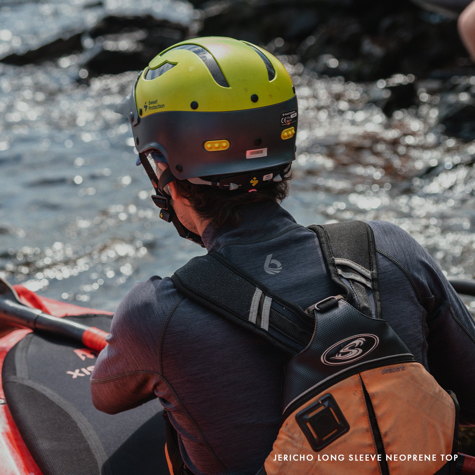 The Jericho Neoprene Rash Top redefines comfort and warmth by utilizing a revolutionary new fabric containing thousands of tiny channels that allow your body to breathe and wick away moisture. The Jericho feels as comfortable as a cotton shirt next to your skin but has the warmth and protection of a neoprene wetsuit.
