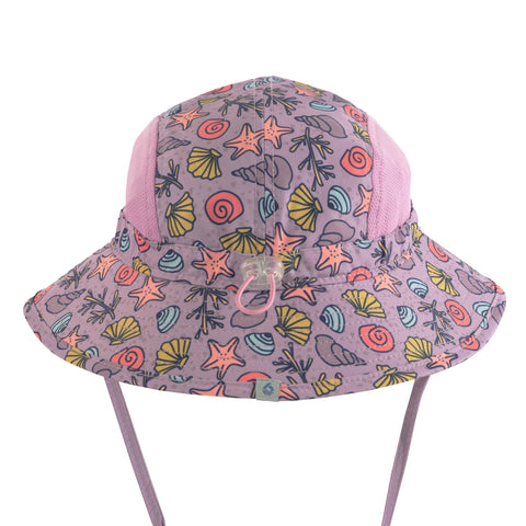 Keep your little one protected from the sun. The Seashell is a wide-brim sun hat constructed from a quick-dry polyester material. The brim is lined with a thin layer of EVA foam so it will float if it comes off, or is thrown overboard!