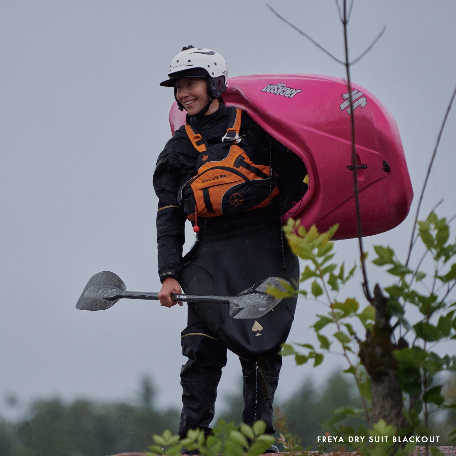 The Freya is a deluxe front-entry, women’s specific dry suit designed to stand up to the toughest tests on the water. This dry suit is constructed using our toughest waterproof-breathable nylon; Exhaust 3.0 and comes complete with features like the stealth double tunnel system, articulated spine, knees & elbows, rear relief zipper, and an adjustable waist-belt. From the SUP to whitewater, the Freya front-entry dry suit will have you feeling like a Norse Goddess.