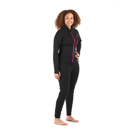 The Vesta uni-suit is a light yet warm layer to be worn under your paddling gear or as a dry suit liner. The uni suit features a low profile collar to ensure comfortable wear under a paddling jacket and is constructed with flat-lock seams to prevent chafing and provide free movement. It will become your favourite piece of gear on and off the water.
